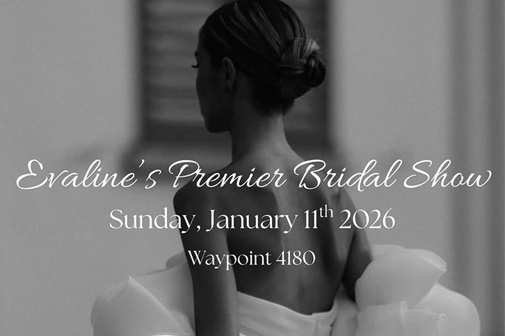 Evaline’s Premier Bridal Show will be held on Sunday, January 11 at Waypoint 4180. Doors open at 12:00pm. Pre-register at www.evalinesbridal.com. Tickets are $15.