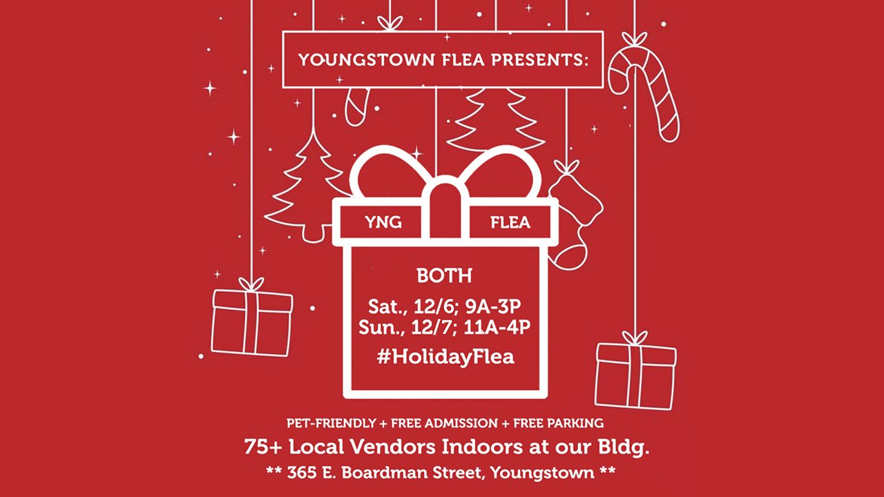 Youngstown Flea 365 E. Boardman Street, Youngstown, OH, United StatesYoungstown Flea presents Holiday Flea on Saturday, December 6 from 9:00am-3:00pm and on Sunday, December 7 from 11:00am-4:00pm. Shop 75+ local vendors. Pet-friendly, free admission and free parking. The two day event will be held at their space located at 365 E. Boardman Street in downtown Youngstown. For more information, visit the Youngstown Flea’s website.