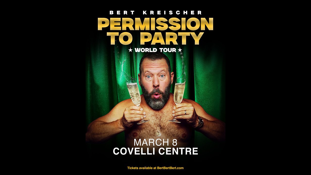 Covelli Centre 229 East Front Street, Youngstown, OH, United StatesComedy superstar Bert Kreischer brings his Permission to Party World Tour to the Covelli Centre on Sunday, March 8, 2026 at 7:00pm. Tickets will be available on Tickemaster.com. Ticket Prices: