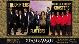 ![]() Enjoy an evening of timeless classics with Cornell Gunter’s Coasters, The Drifters, and the Platters on Thursday, December 4, 2025 at 7:30pm at Stambaugh Auditorium. Get ready for a magical night of unforgettable music as three of the most legendary vocal groups of all time — Cornell Gunter’s Coasters, The Drifters and the Platters — come |