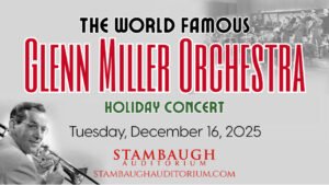 ![]() The Glenn Miller Orchestra will perform a Holiday Concert on Tuesday, December 16 at 7:30pm at Stambaugh Auditorium. The Legendary big band will bring their extensive repertoire of hits, along with Christmas Favorites to Stambaugh Auditorium. American musician, arranger, composer, and bandleader, Glenn Miller, is one of the best known names from the swing era. |